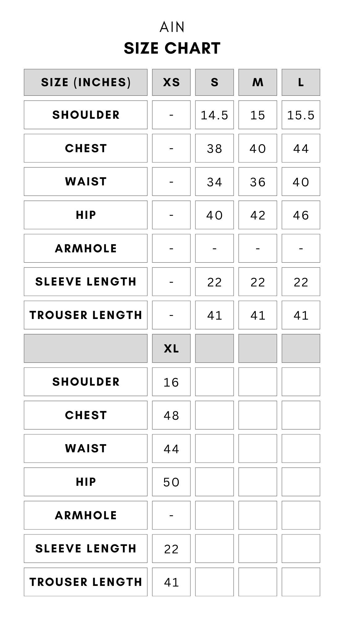 Click here to see Ain's size chart